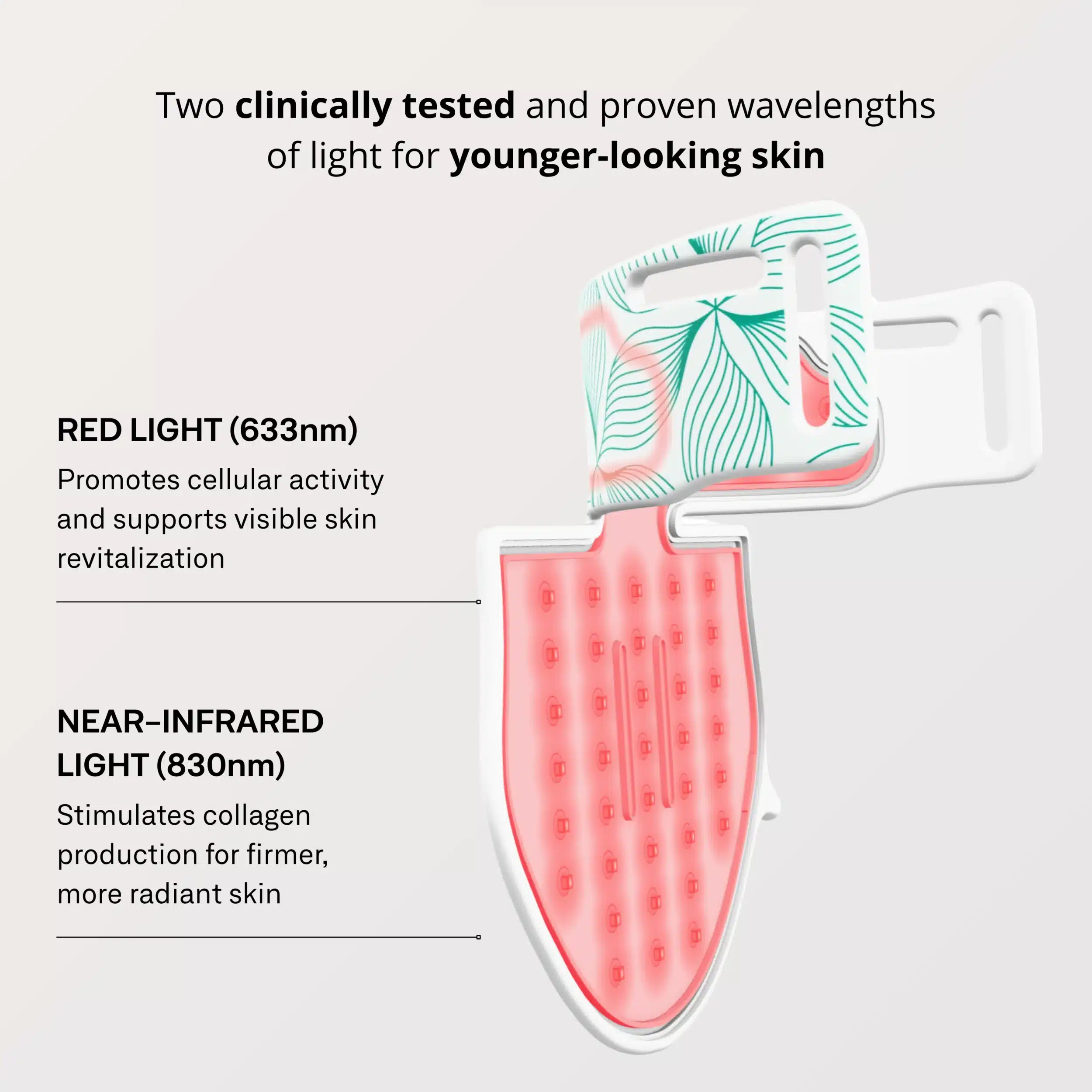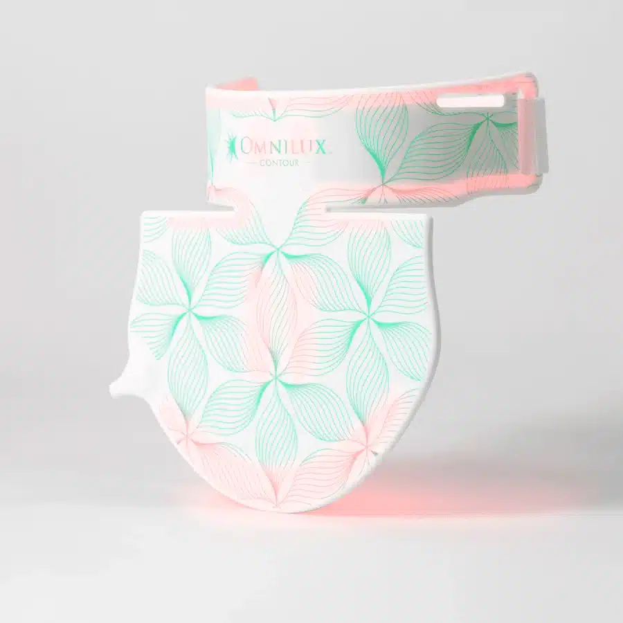 Omnilux Contour Neck & Décolleté is an LED light therapy device designed to reduce fine lines, improve skin elasticity, and rejuvenate the delicate neck and chest area.